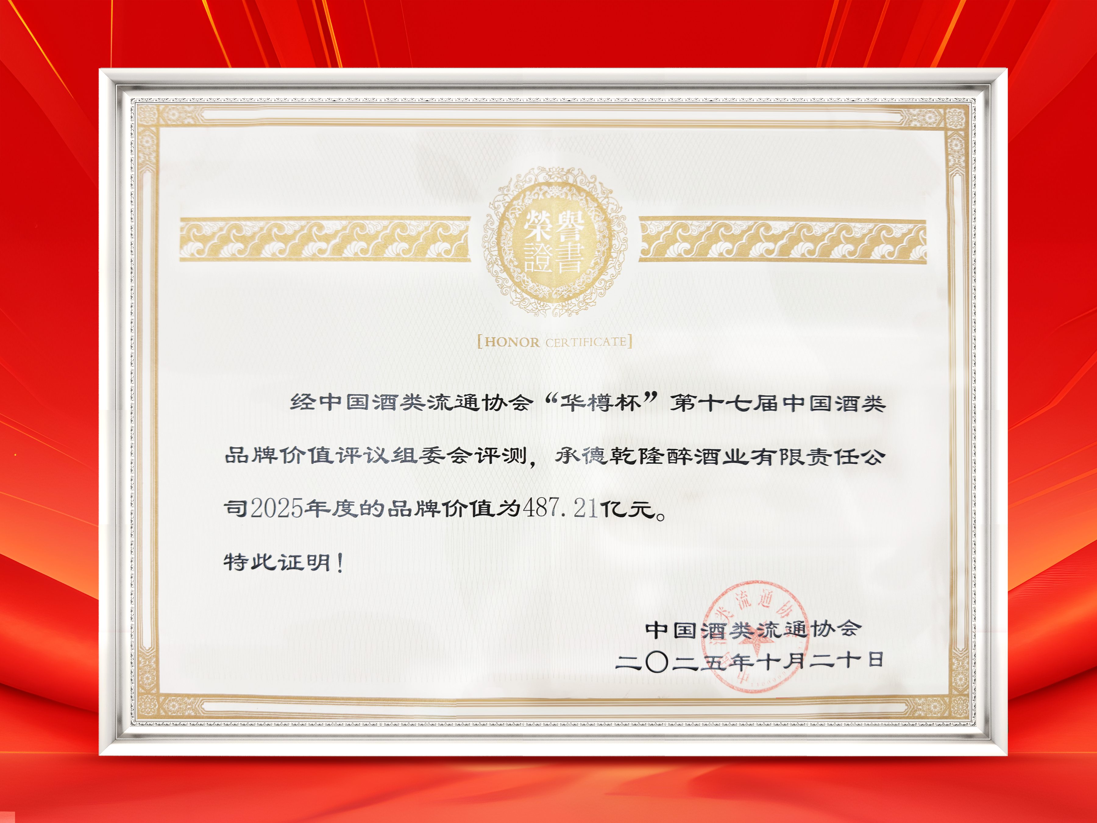 榮譽(yù)加冕,再創(chuàng)輝煌。在今日揭曉的第十七屆“華樽杯”中國酒類品牌價(jià)值評(píng)議中,承德乾隆醉酒業(yè)有限責(zé)任公司(板城酒業(yè))表現(xiàn)搶眼,品牌價(jià)值高達(dá)487.21億元,較去年實(shí)現(xiàn)顯著增長,位列中國白酒行業(yè)第25位,較去年提升五位。這一成績不僅彰顯了企業(yè)強(qiáng)大的綜合實(shí)力,更體現(xiàn)了行業(yè)專家與市場對(duì)板城品牌的高度認(rèn)可。