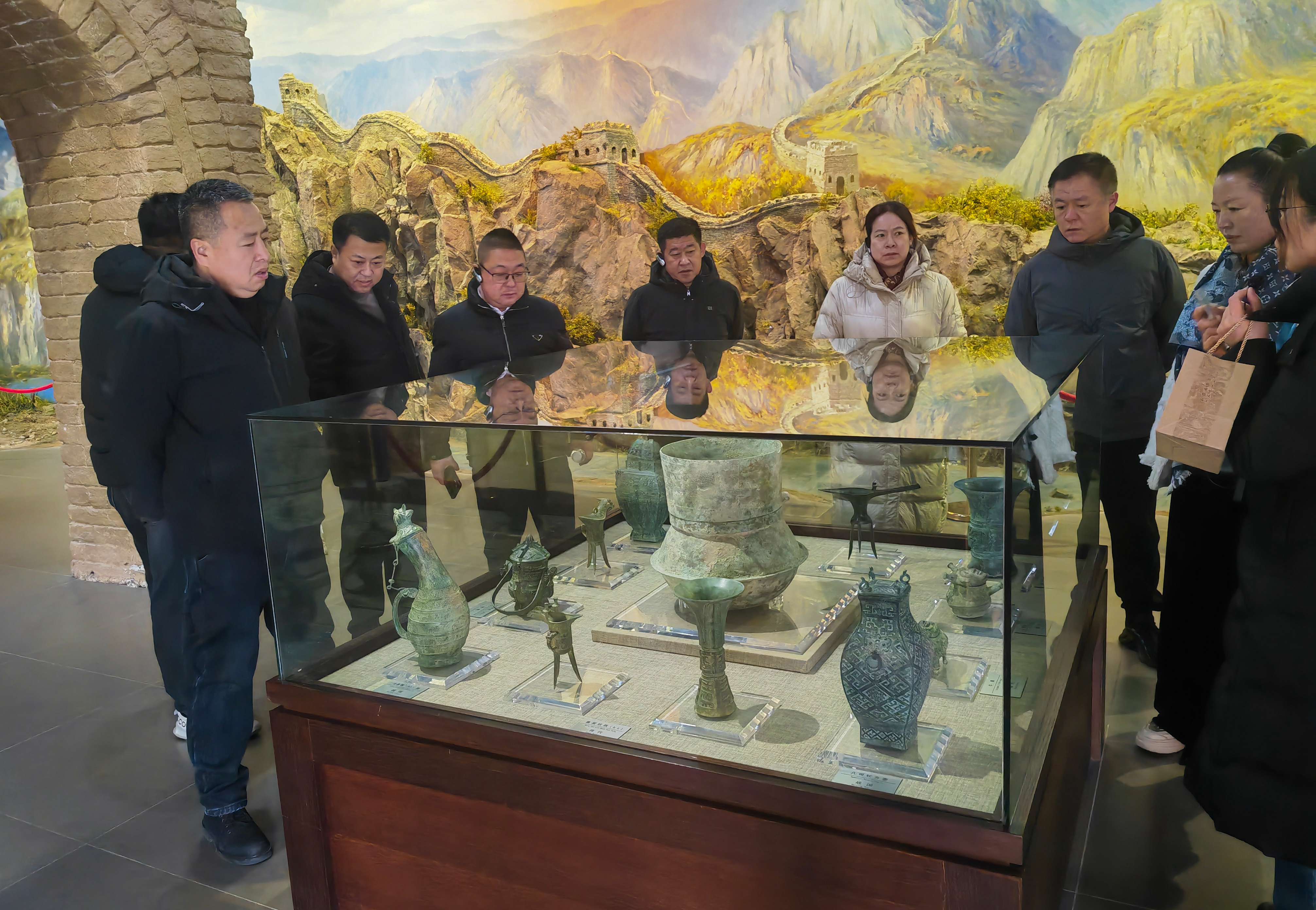 在板城酒業(yè)講解員的引領(lǐng)下,聶樹國會(huì)長一行首先參觀了板城燒鍋酒博物館。館內(nèi)陳列的原承德境內(nèi)出土的金代銅燒鍋、清代嘉慶皇帝御賜的《御制味余書室全集定本》等實(shí)物展品,揭示了承德境內(nèi)八百年的銅燒鍋釀酒史,更詳細(xì)闡述了板城燒鍋酒三百余年的國家非遺老五甑釀造歷史與文化傳承。