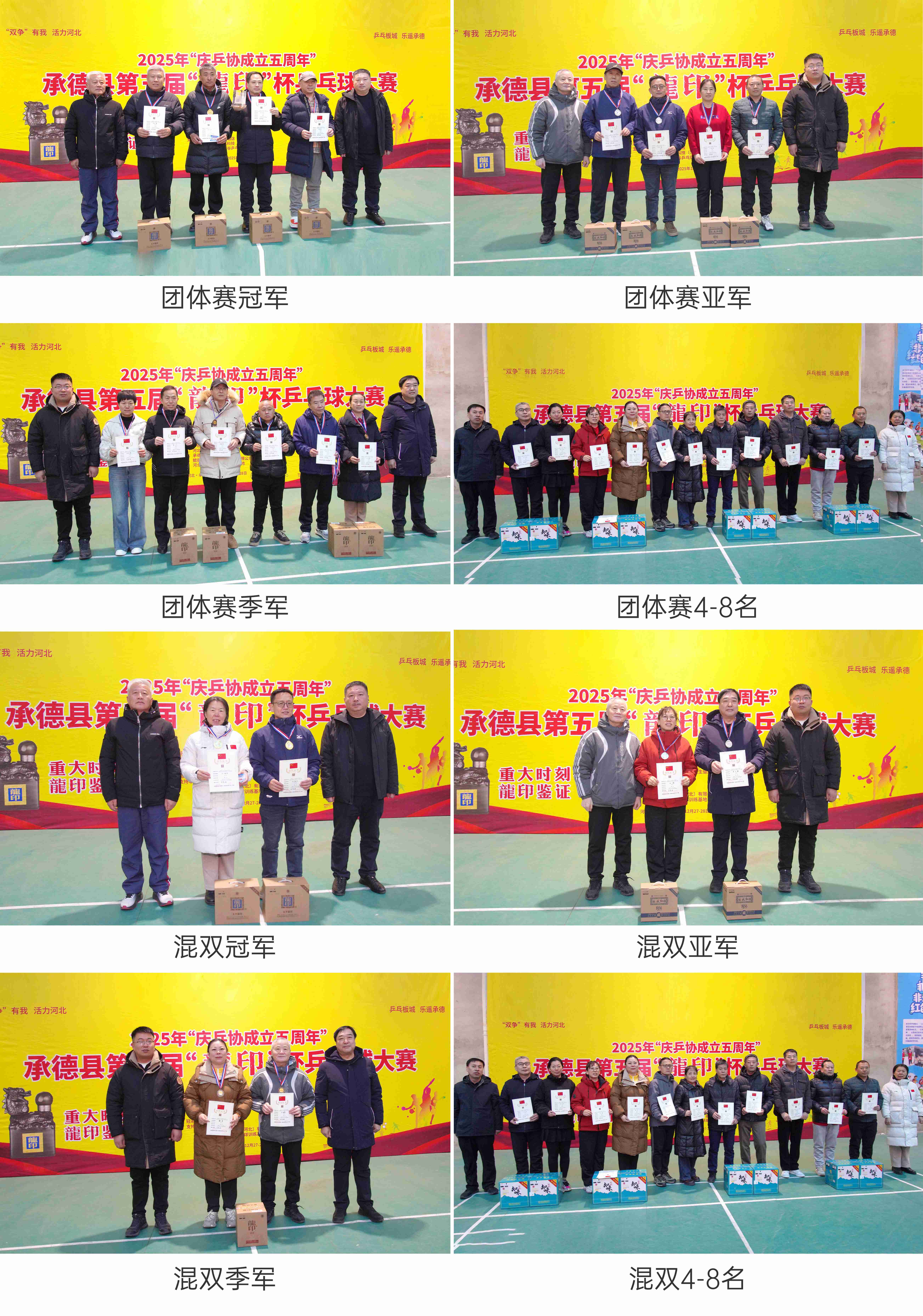 12月27日至28日,2025年“慶乒協(xié)成立五周年”承德縣第五屆“龍印杯”乒乓球大賽圓滿落幕。本次賽事由承德縣教育和體育局、承德縣旅游和文化廣電局聯(lián)合主辦;承德縣體育總會、承德縣乒乓球運(yùn)動(dòng)協(xié)會承辦;承德縣民政局、承德縣衛(wèi)生健康局、承德縣融媒體中心協(xié)辦;板城酒業(yè)連續(xù)五屆獨(dú)家冠名支持。