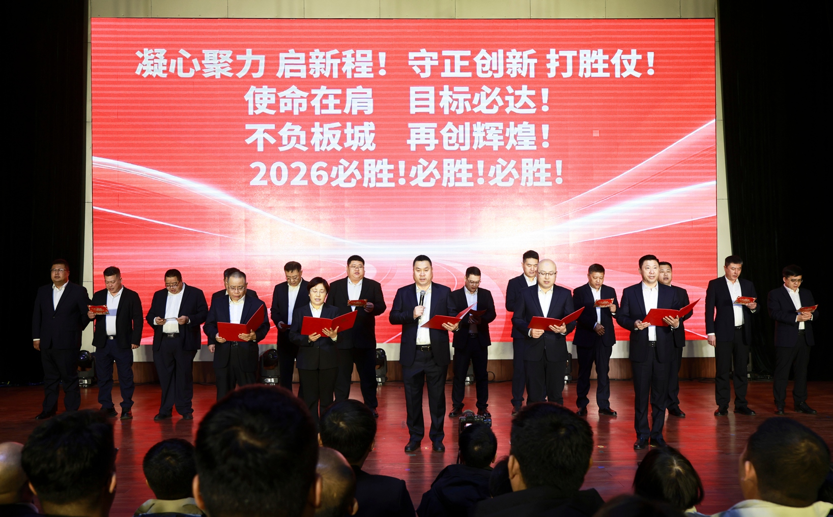 隨后,公司班子領(lǐng)導(dǎo)集體登臺帶領(lǐng)全體板城人共同喊出:“使命在肩,目標必達!不負板城,再創(chuàng)輝煌!”的錚錚誓言。